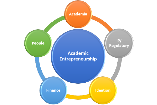 Academia: There are several unique aspects of working in an academic environment that pose challenges to academic entrepreneurship. These include the appointment and promotion process, which often values traditional metrics such as grant funding and research manuscripts over actual implementation of technology in the public sphere IP/Regulatory: Intellectual property is often carefully monitored by academic entities, which varying degrees of flexibility regarding licensing. Major regulatory concerns exist, one of the most important of which is conflict of interest and ethical conduct of research, especially when involving the life sciences Ideation: Academic settings are inherently creative places, yet ideation can be constrained by a tendency to isolate oneself from the actual customers that may use the technology or product (the “ivory tower” syndrome).